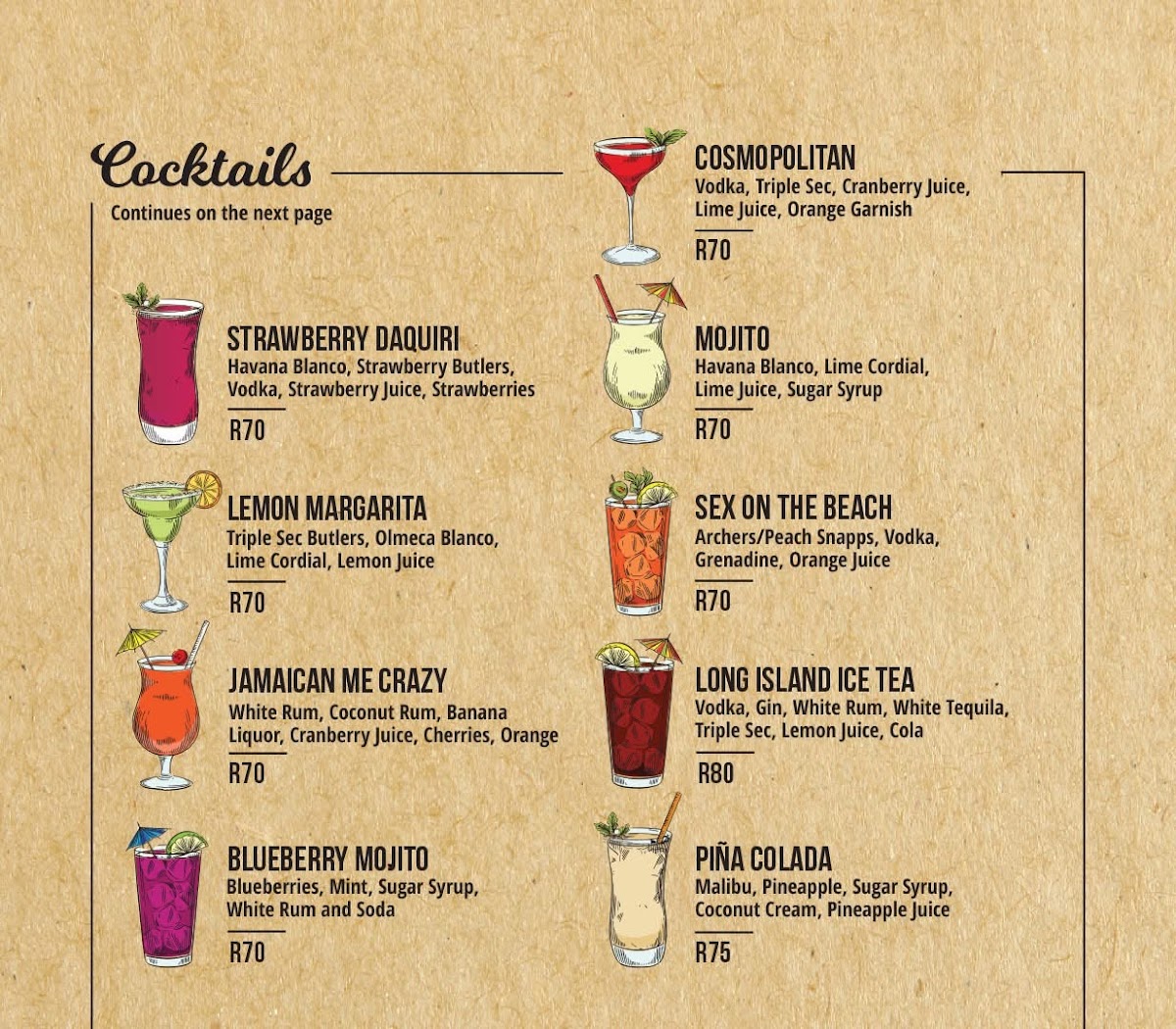 The menu is organized to cater to different dining preferences and times of day, with options suitable for lunch, dinner, and social drinking occasions. Guests typically use the menu for relaxed meals or casual pub gatherings.