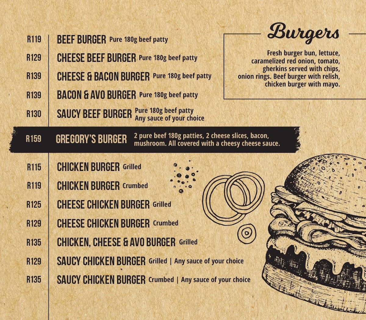Gregorys Pub and Grill Menu